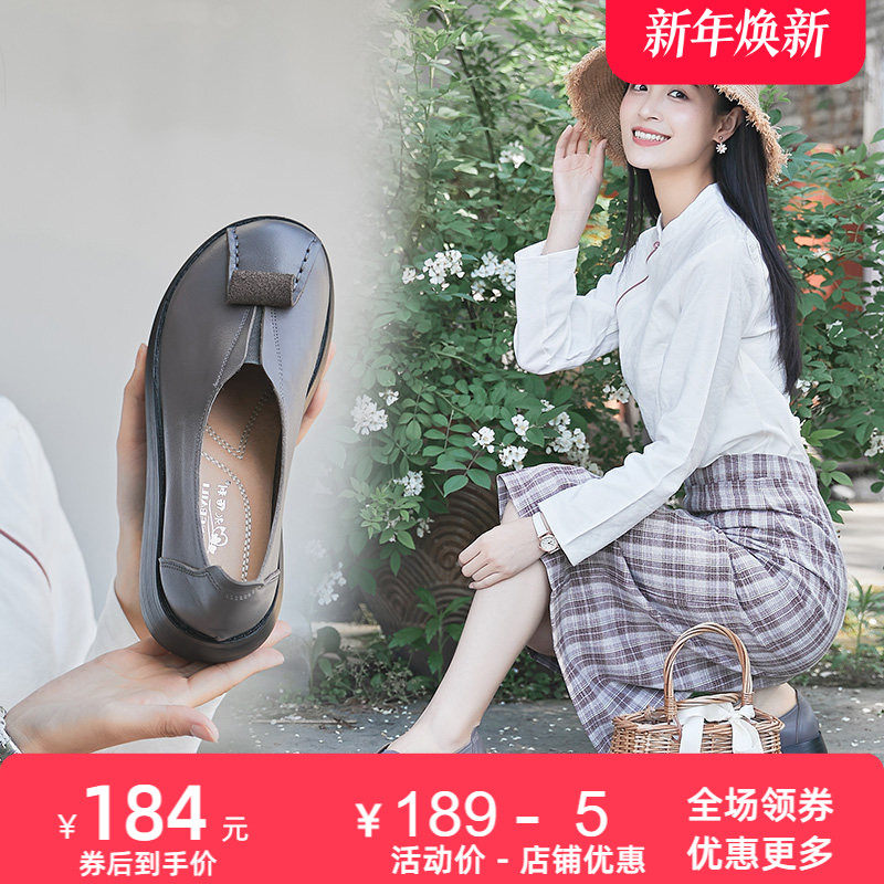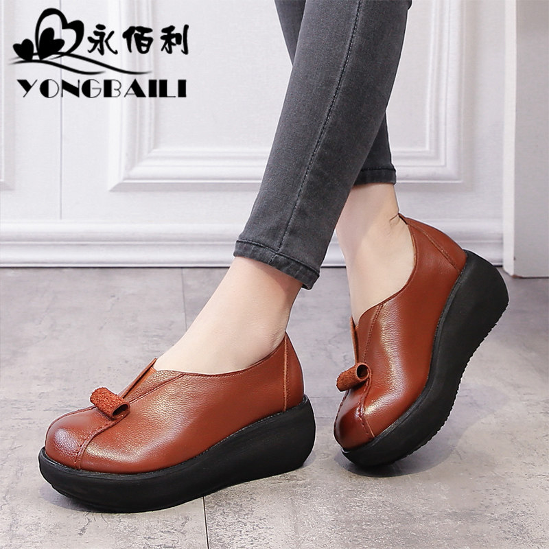 2025春季新款牛皮单鞋女厚底特色松糕鞋舒适圆头休闲皮鞋子女鞋
