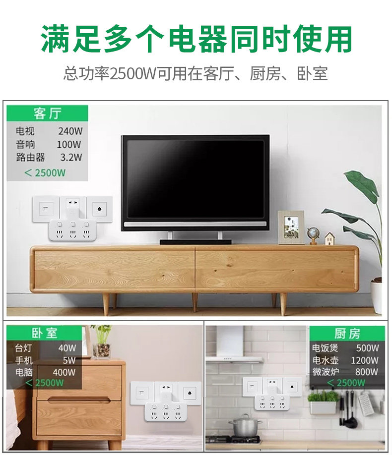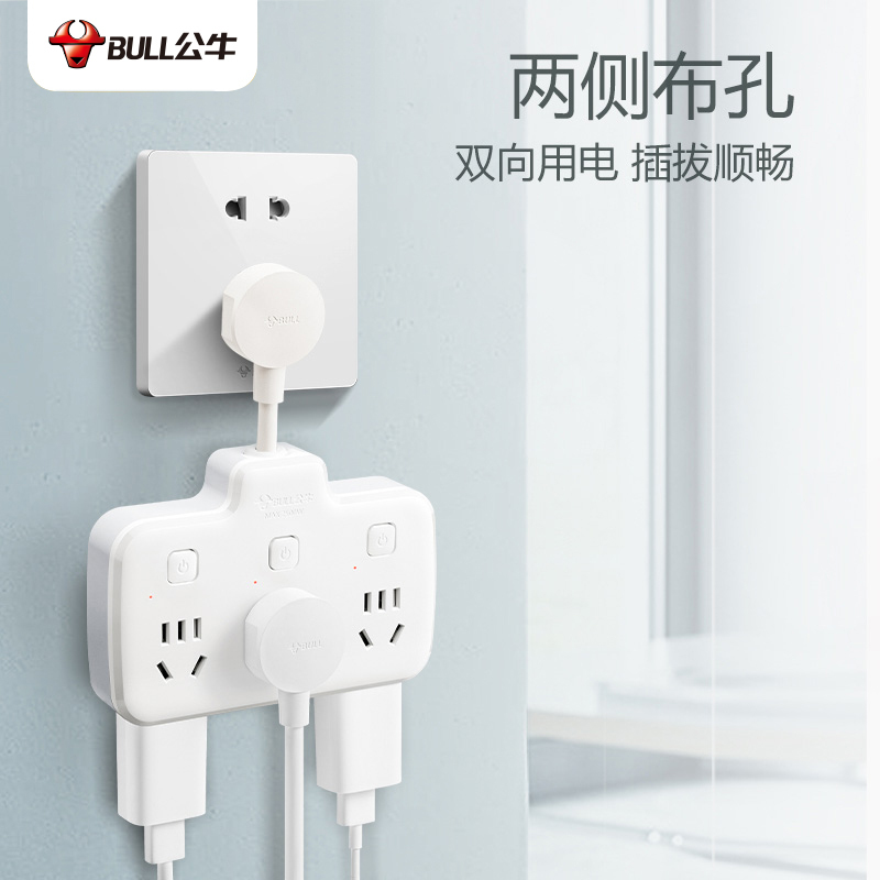 公牛插座转换器面板多孔多插位一转二三多功能插排移位器扩展插头