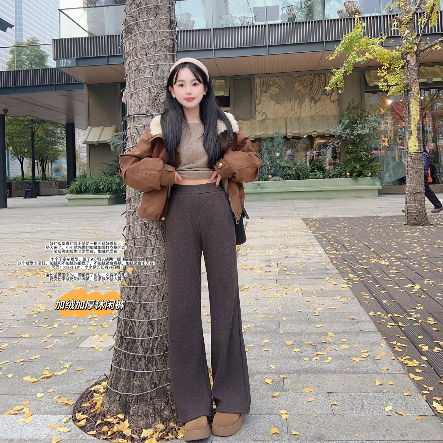 小小家小个子 窄版微喇加绒休闲裤25冬厚款保暖显瘦长款裤子