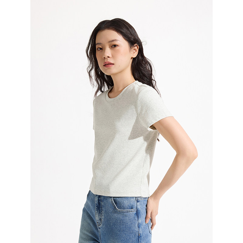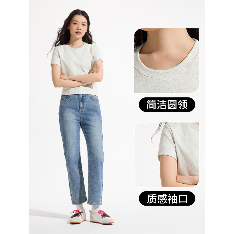 夏季短袖t恤女内搭短款低圆领u领纯白灰色打底衫中袖修身纯色上衣