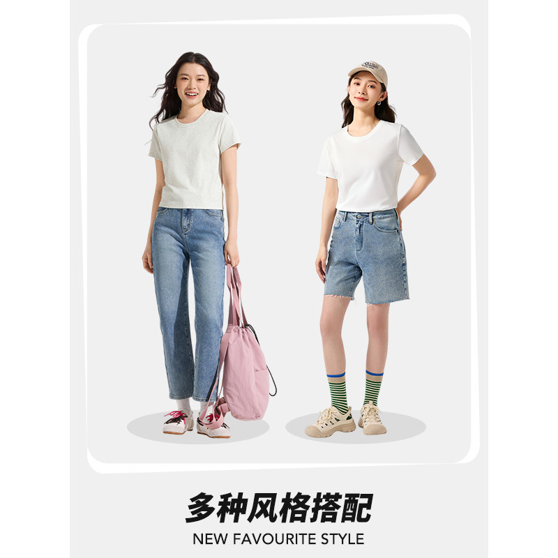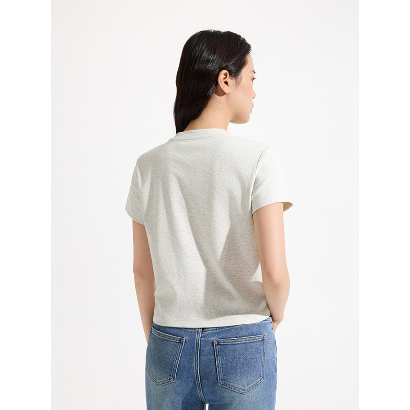 热风女士白色短袖T恤2025年夏季新款女士纯色基础款百搭打底上衣