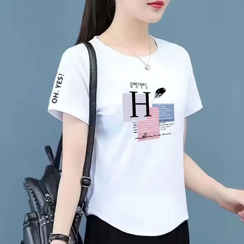 啄木鸟纯棉短袖t恤女2025夏季新款韩版弧形下摆遮肉显瘦短款体恤