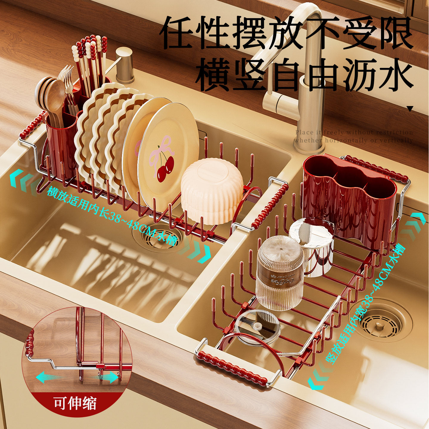 可伸缩碗碟收纳架厨房碗盘沥水架置物架放碗筷盘子餐具收纳架碗架