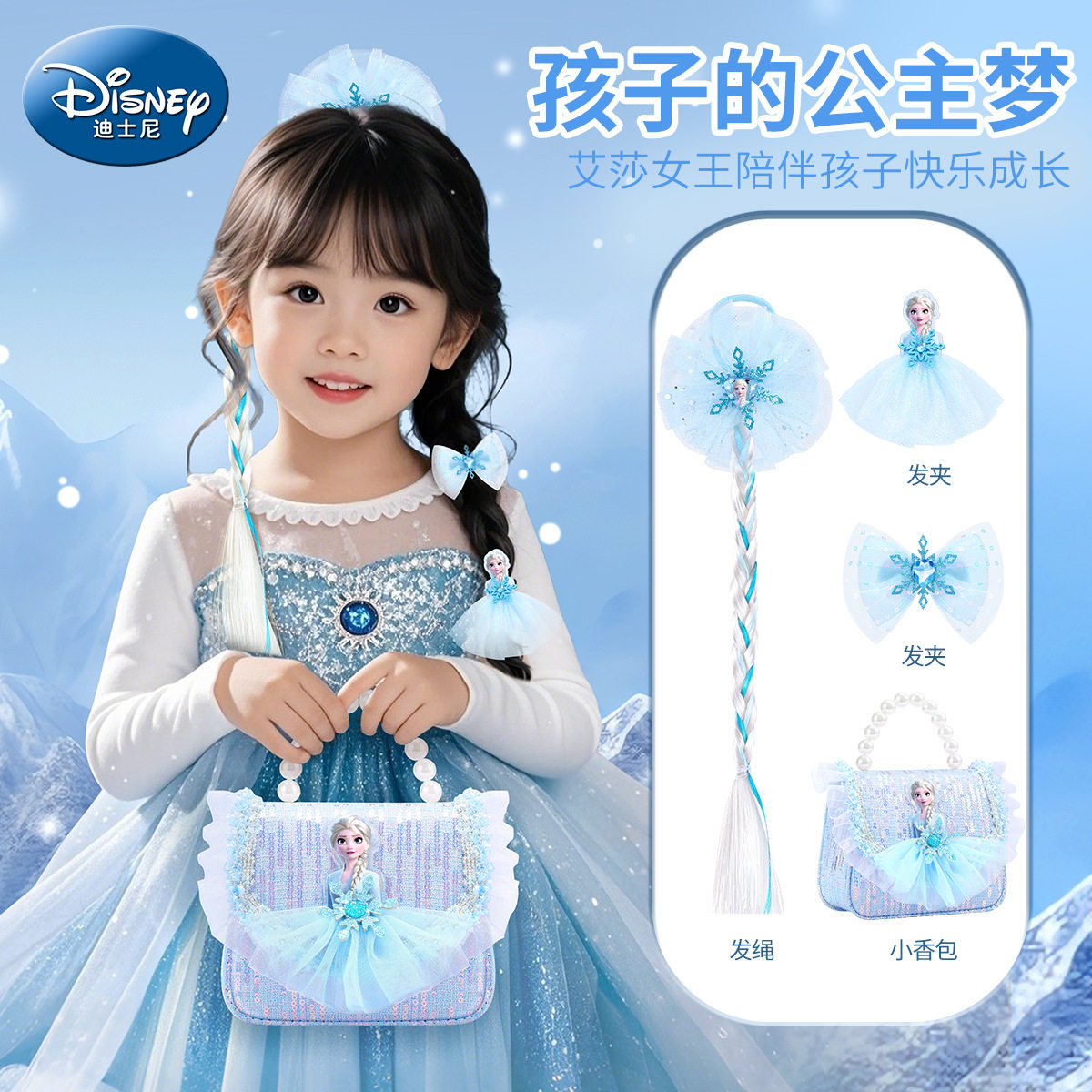 迪士尼儿童斜挎包2025新款女童艾莎公主女宝宝手提包小香风