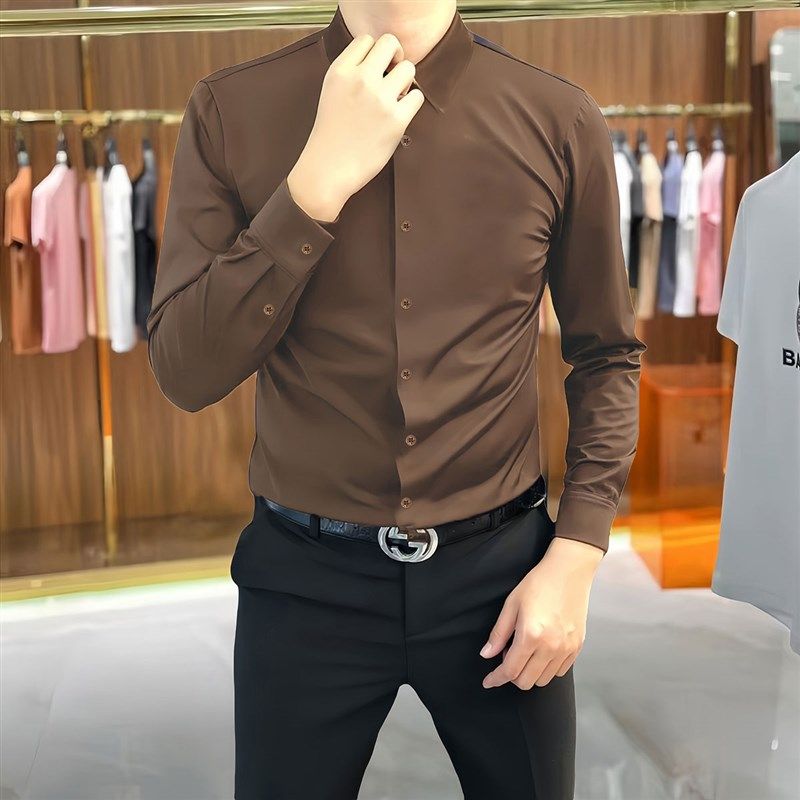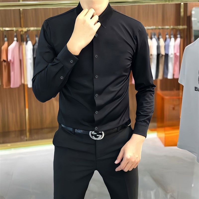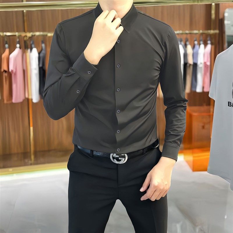修身高弹衬衫男士长袖秋季新款免烫轻奢商务正装婚庆J丝光棉衬衣