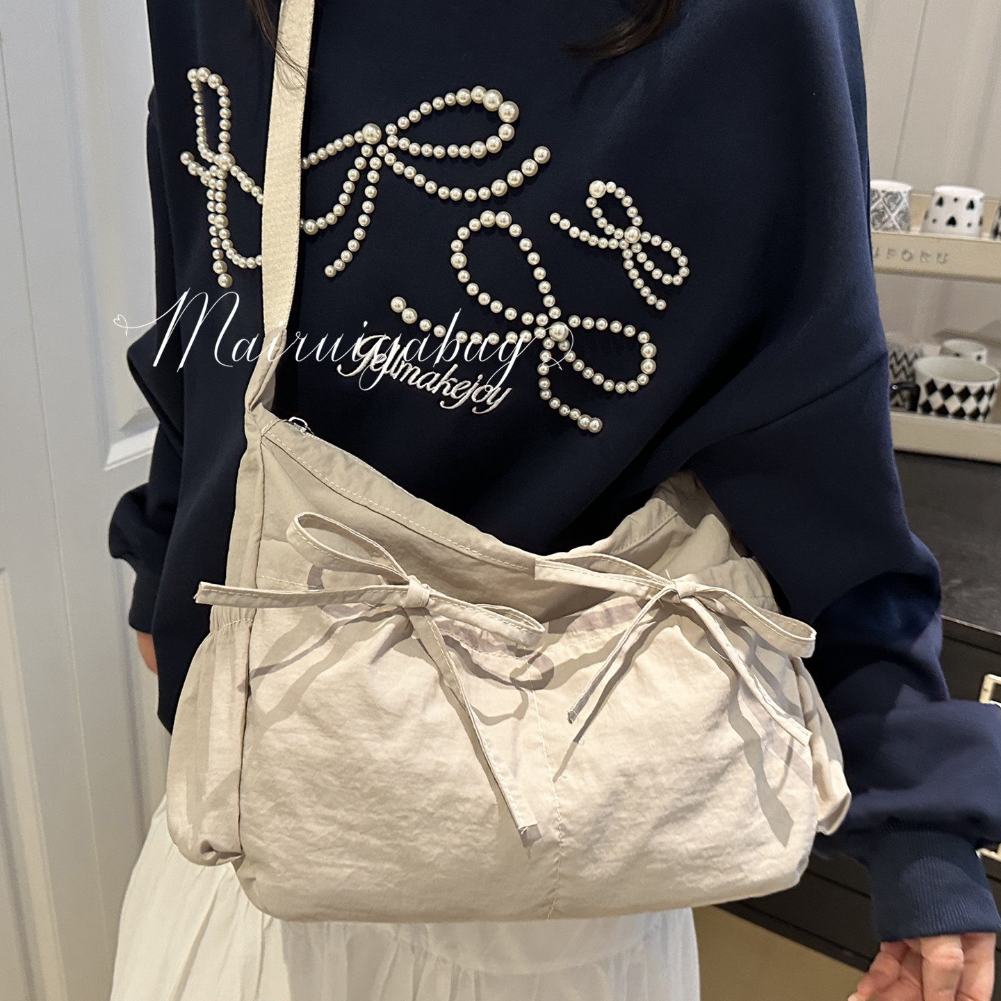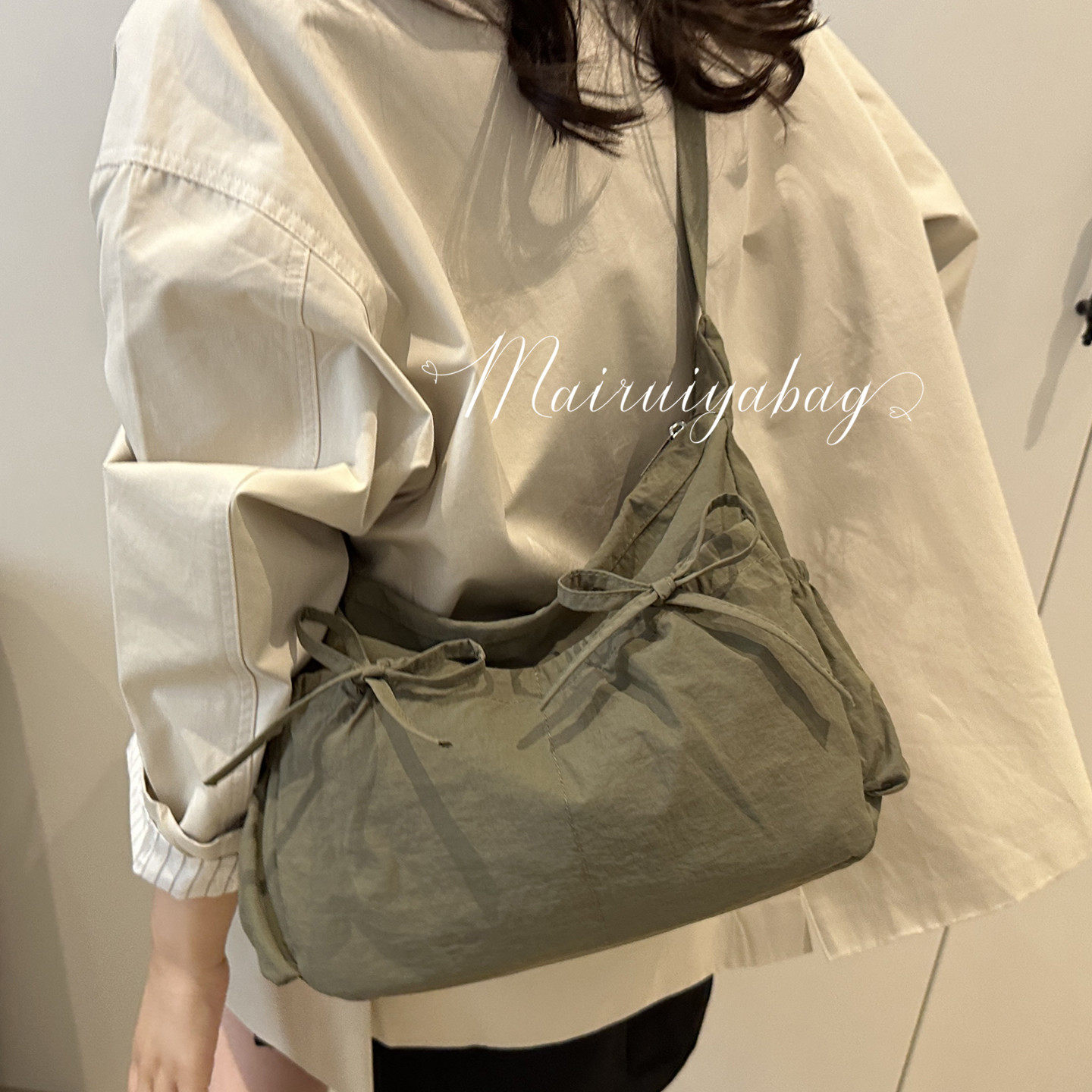 简约芭蕾风大容量通勤帆布斜挎包