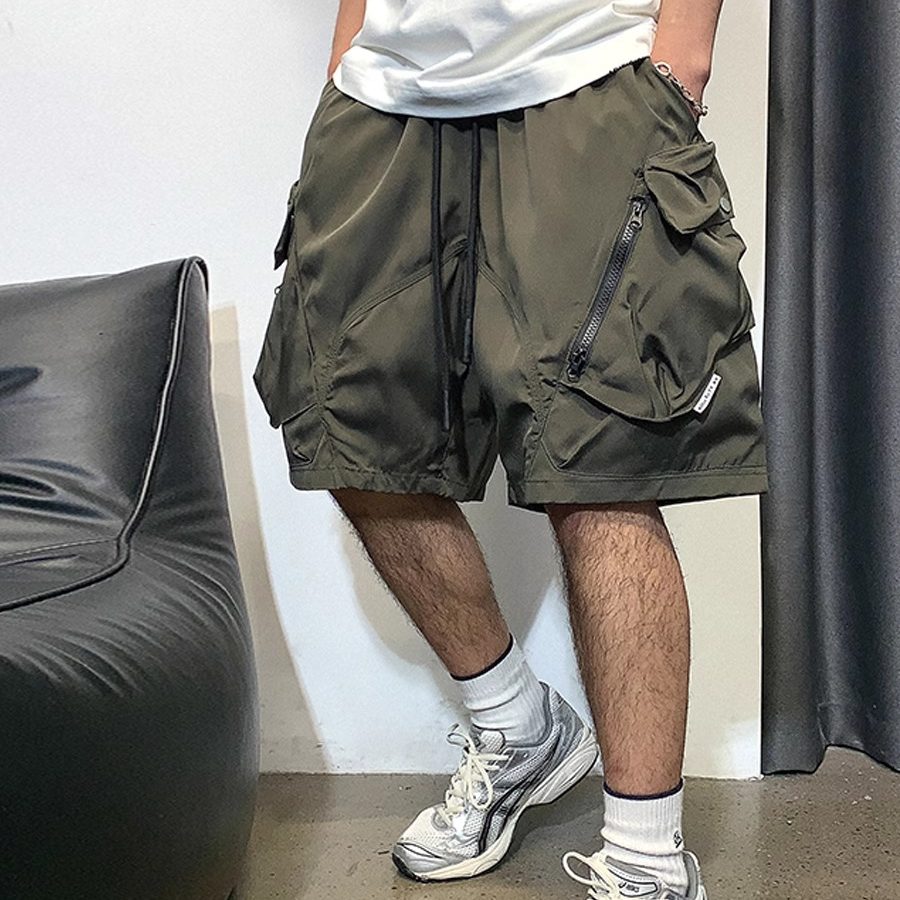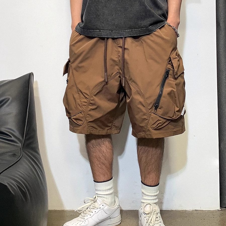 多口袋机能工装短裤男夏季潮牌纯色休闲宽松直筒外穿裤子速干中裤