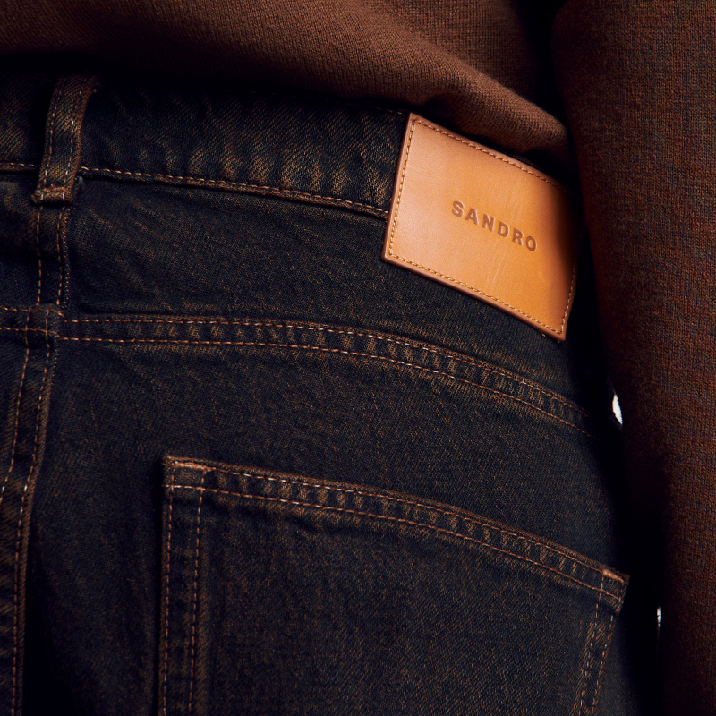 SANDRO Outlets秋冬男装法式时尚复古做旧棉质黑色直筒长裤牛仔裤