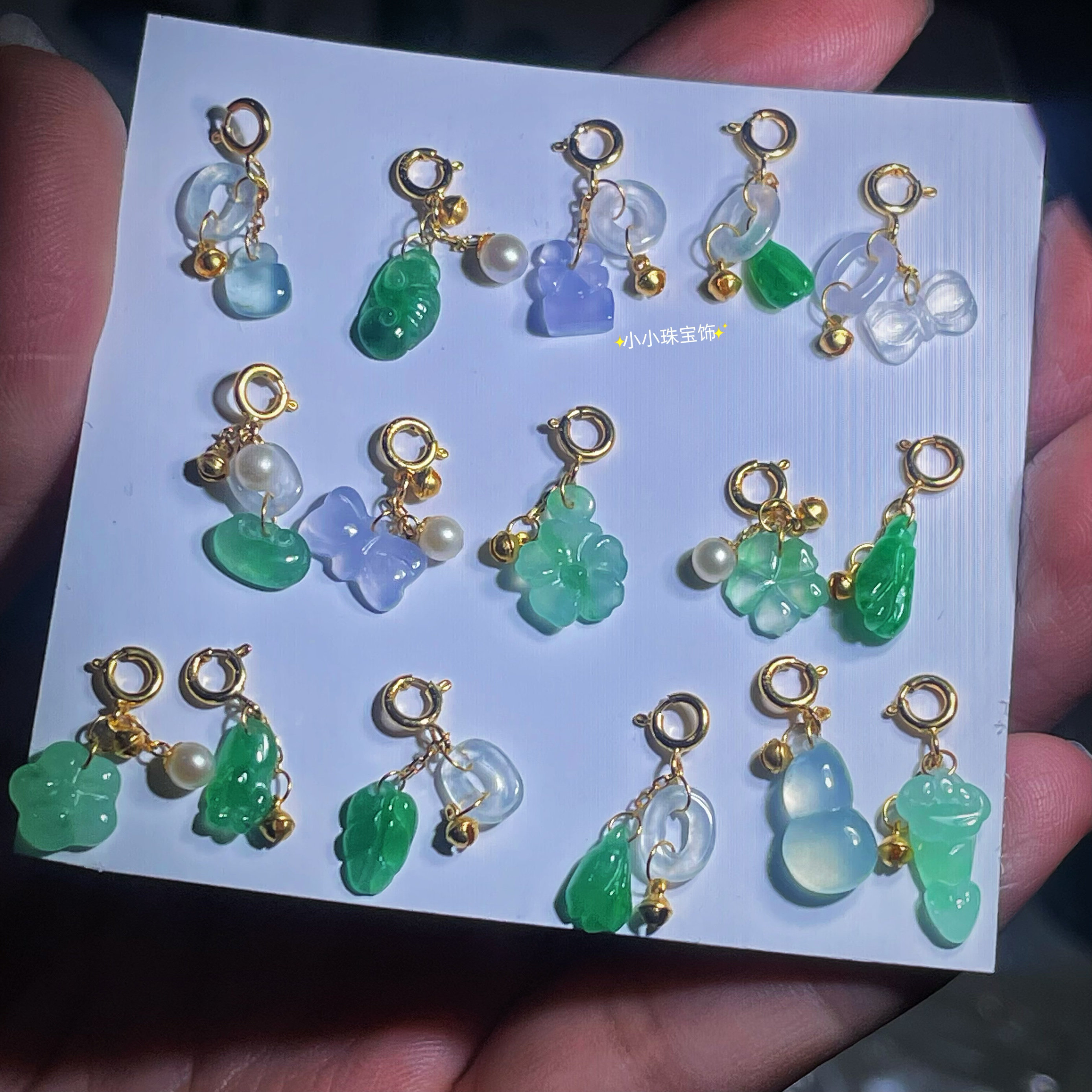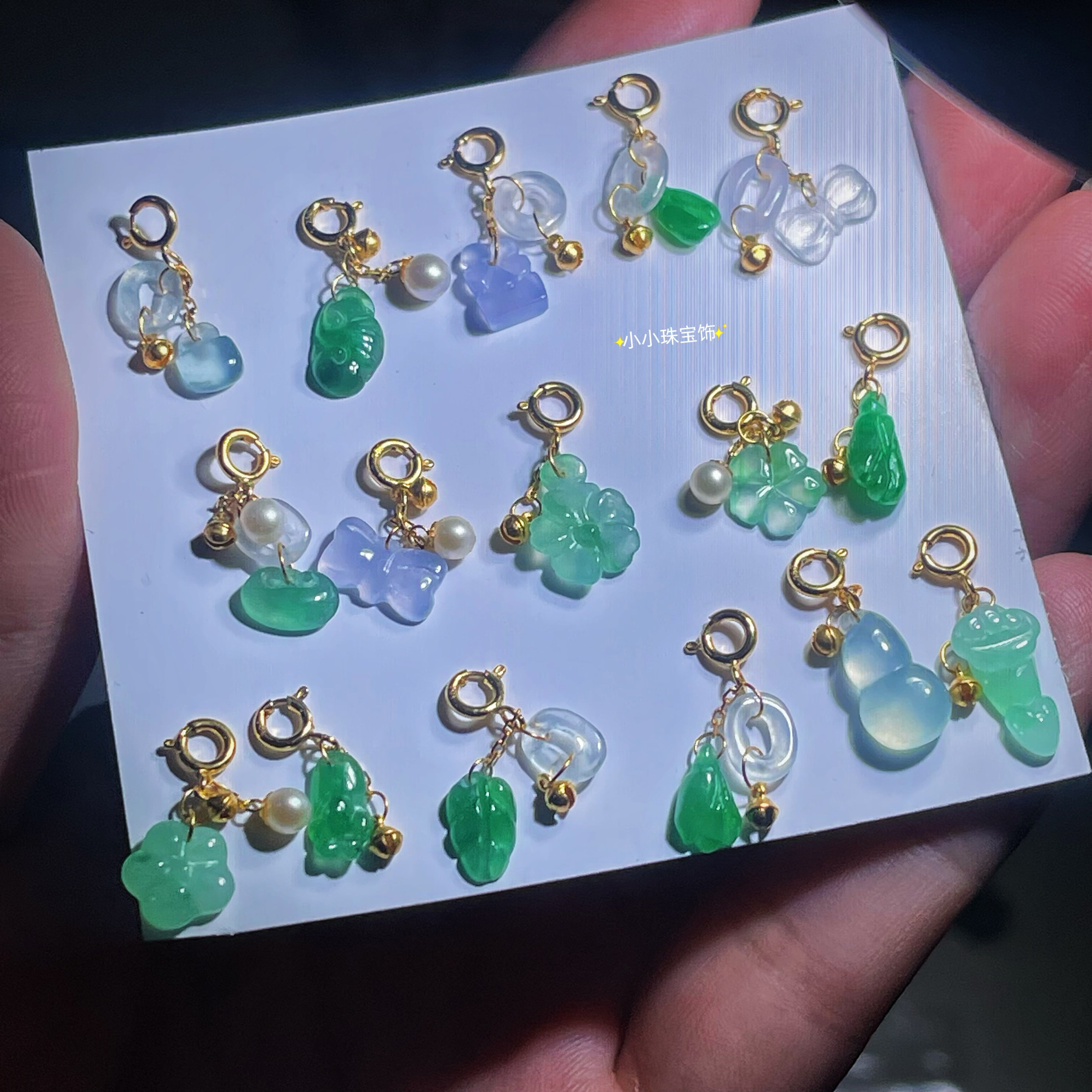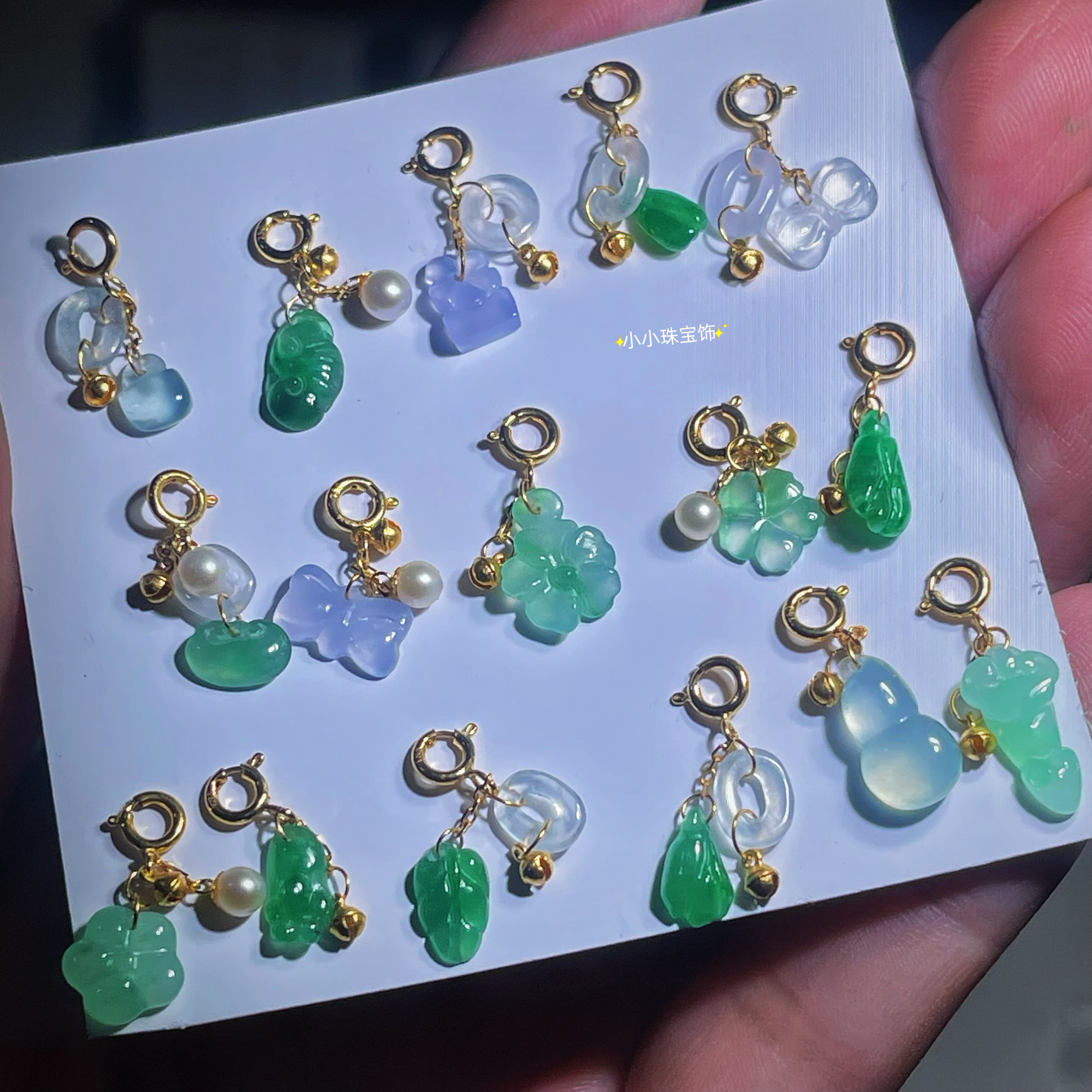 天然翡翠A货冰种阳绿小滴溜金盘缠配饰18k真金链接直播间定制专拍