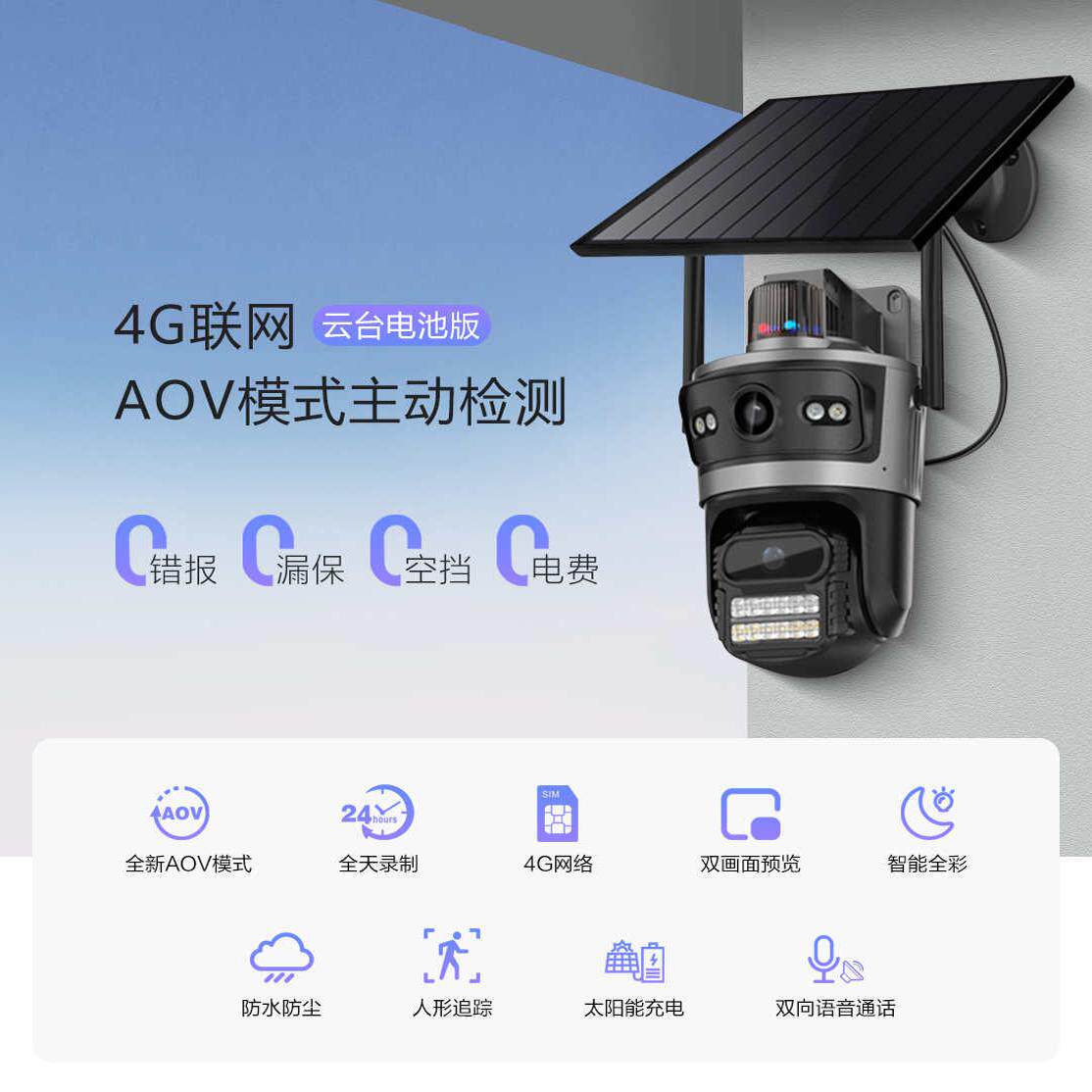 太阳能4G免充值无线监控摄像头人形跟踪智能双光全彩球机360旋转