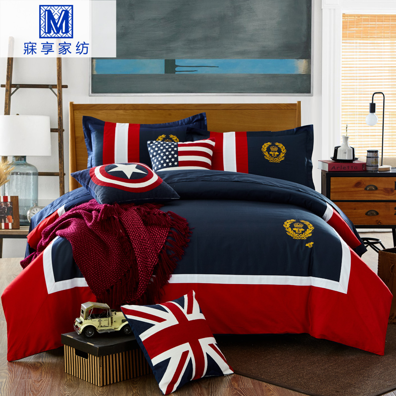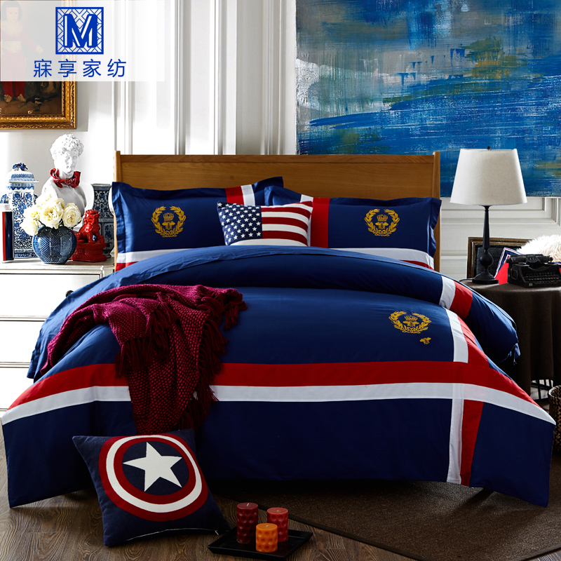 儿童四件套纯棉100全棉1.2米床笠英伦4件套被套床单三V件套男孩1.