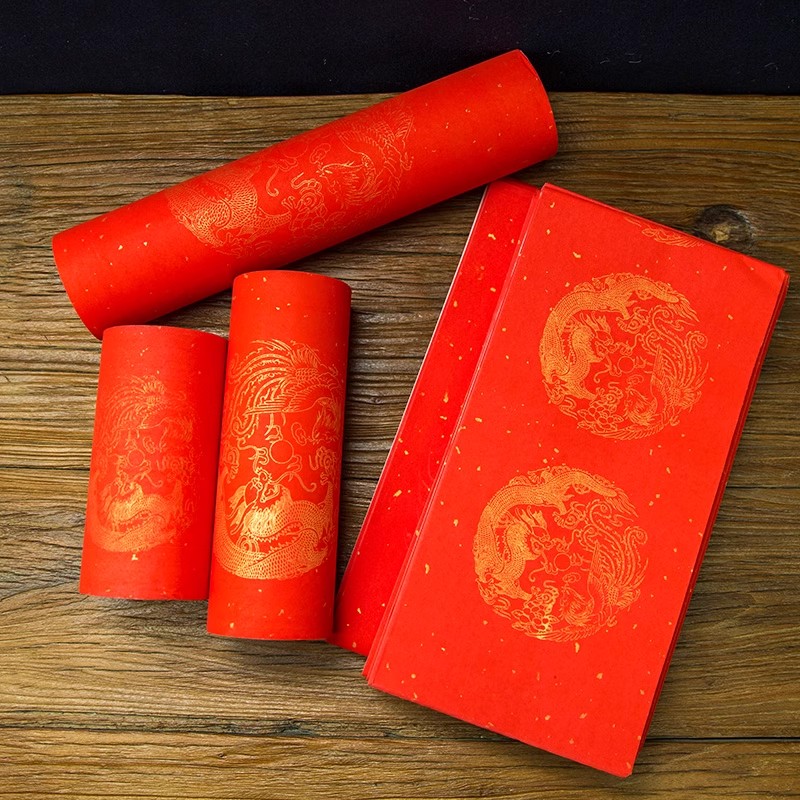 加厚福字纸空白手写福字红纸春字对联纸2025批发宣纸春联斗方高档蜡染万年红纸烫金新年自写门贴春节专用红纸
