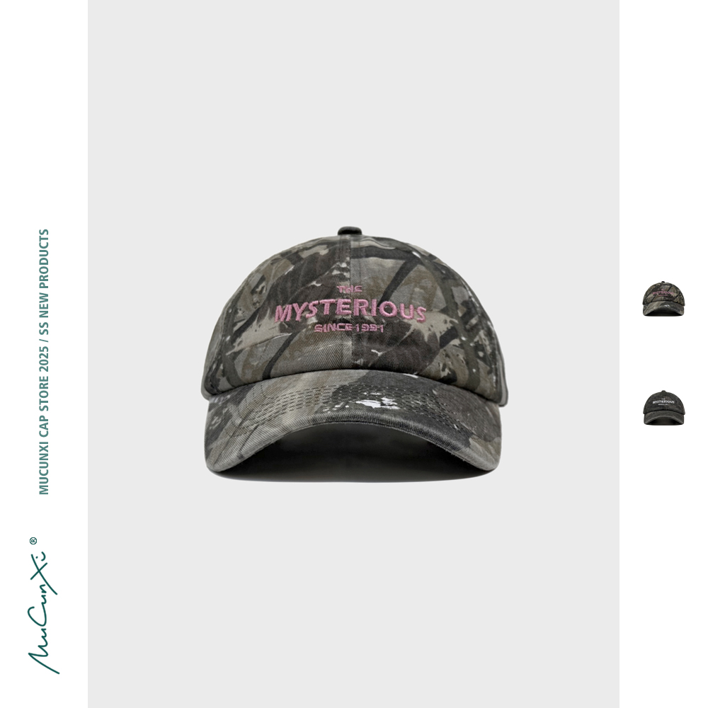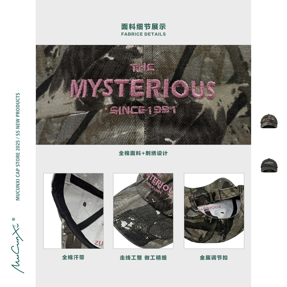 MUCUNXI 美式做旧字母刺绣树枝迷彩鸭舌帽男软顶户外遮阳棒球帽女