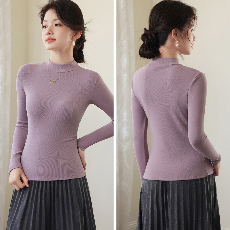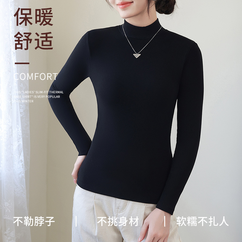 德绒半高领打底衫内搭修身长袖