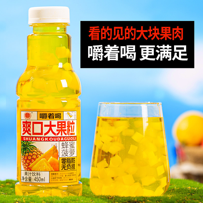 嚼着喝大果粒果肉果汁饮料整箱450ml15瓶装多口味蜜香菠萝果饮