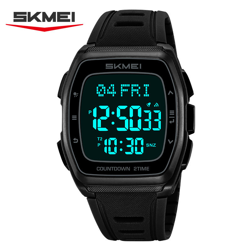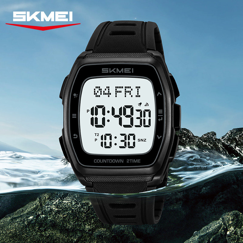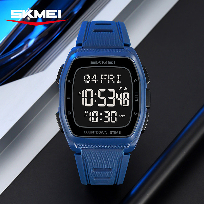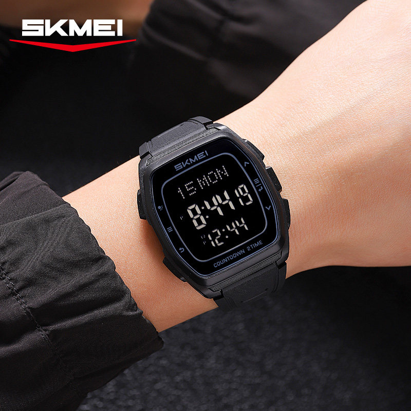 时刻美时尚休闲运动酒桶型电子表多功能计时夜光防水男士学生手表