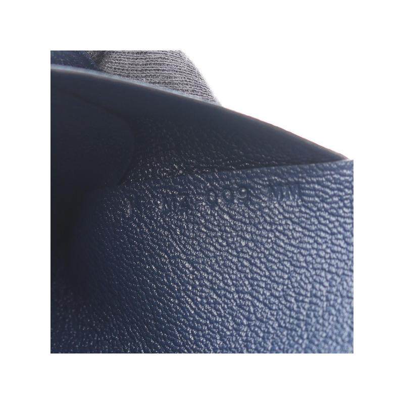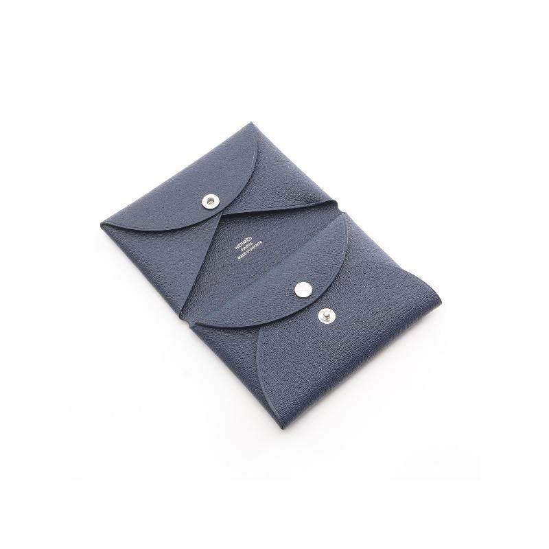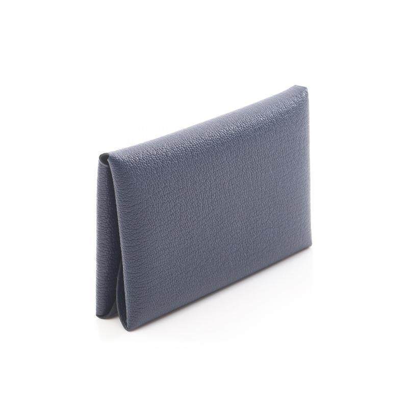 中古Hermes爱马仕女S级99新Calvi牛皮零钱包蓝色