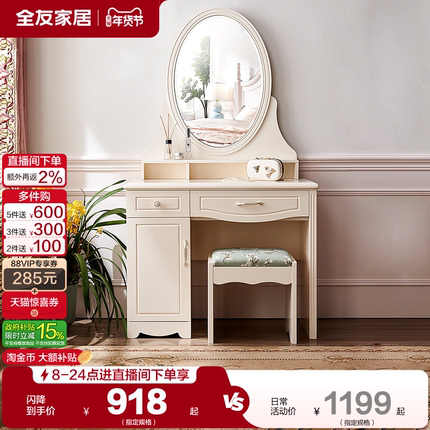 全友家居美式卧室带镜子梳妆台小户型家用收纳储物一体化妆桌子