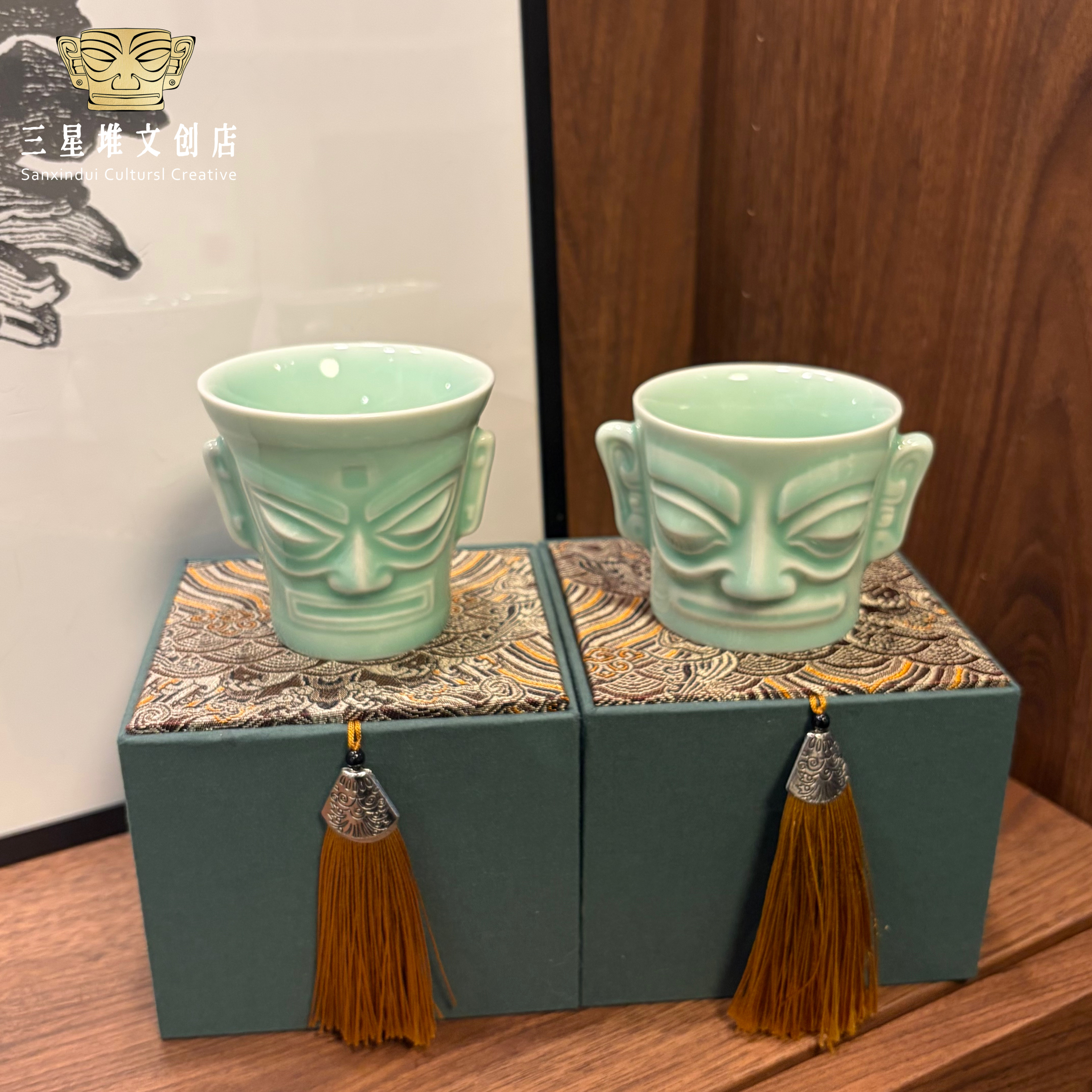 三星堆陶瓷杯喝茶杯个人品茗单杯主人杯四川旅游纪念品伴手礼送人