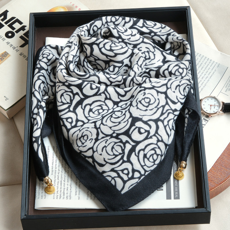 三角小方巾磁吸扣围巾女款2025新款秋冬季送妈妈保暖棉麻围脖丝巾