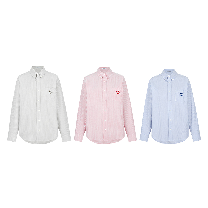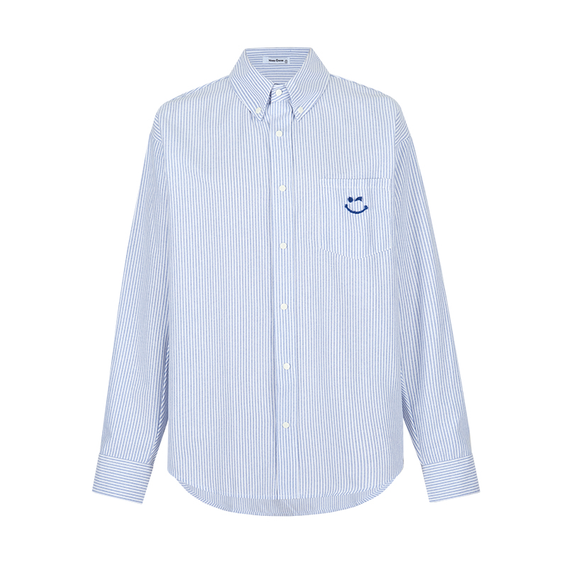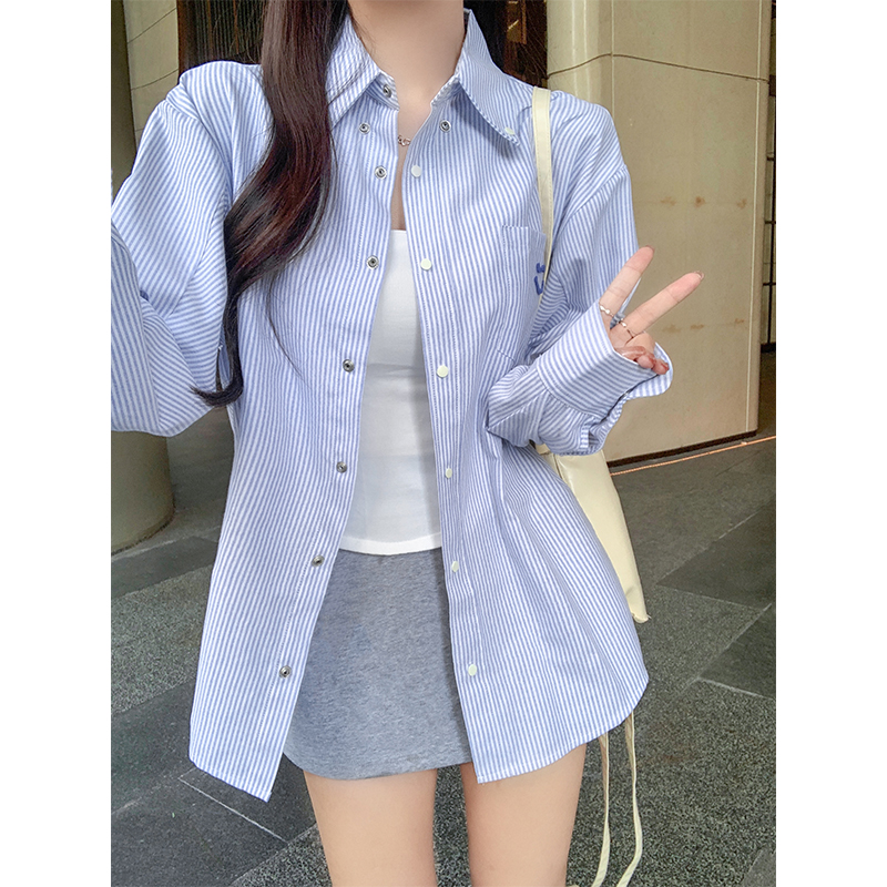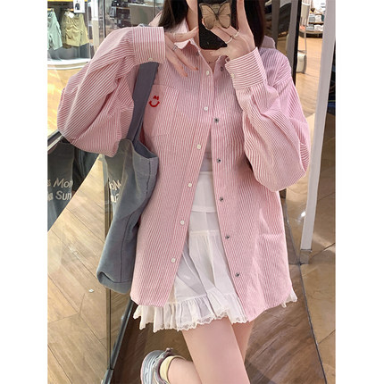 宽松条纹衬衫女2024夏季新款防晒笑脸刺绣衬衣慵懒显瘦上衣外套