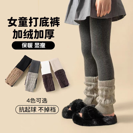 女童打底裤加绒加厚秋冬季堆堆袜套冬款宝宝外穿长裤子儿童连裤袜