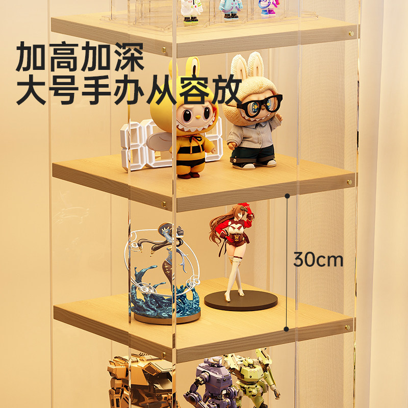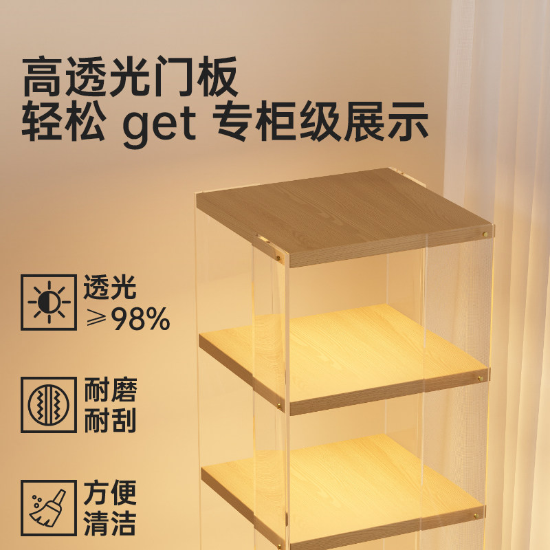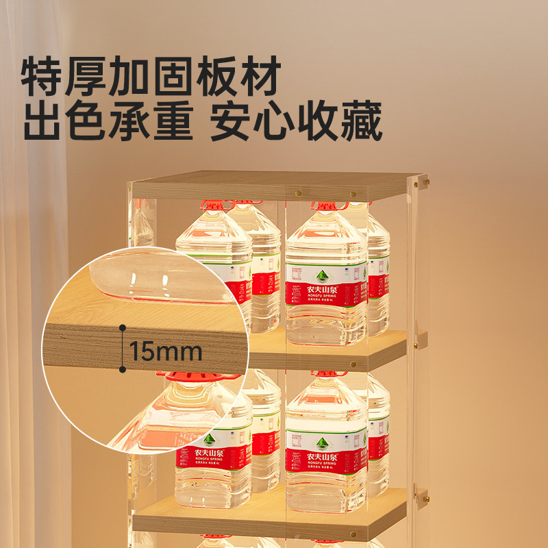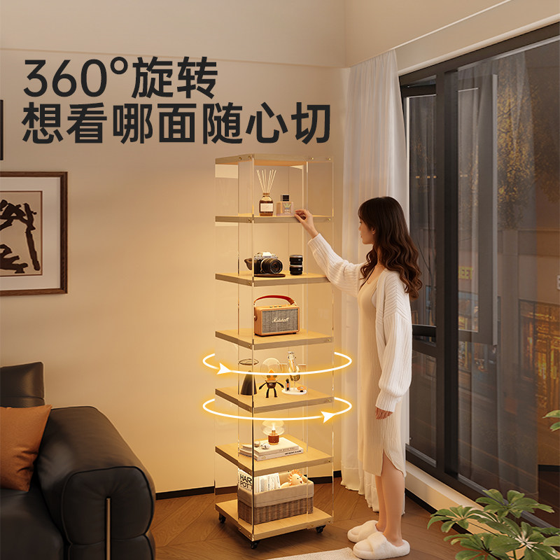 落地书架分层置物架家用亚力克书柜置物柜一体实木旋转透明储物架