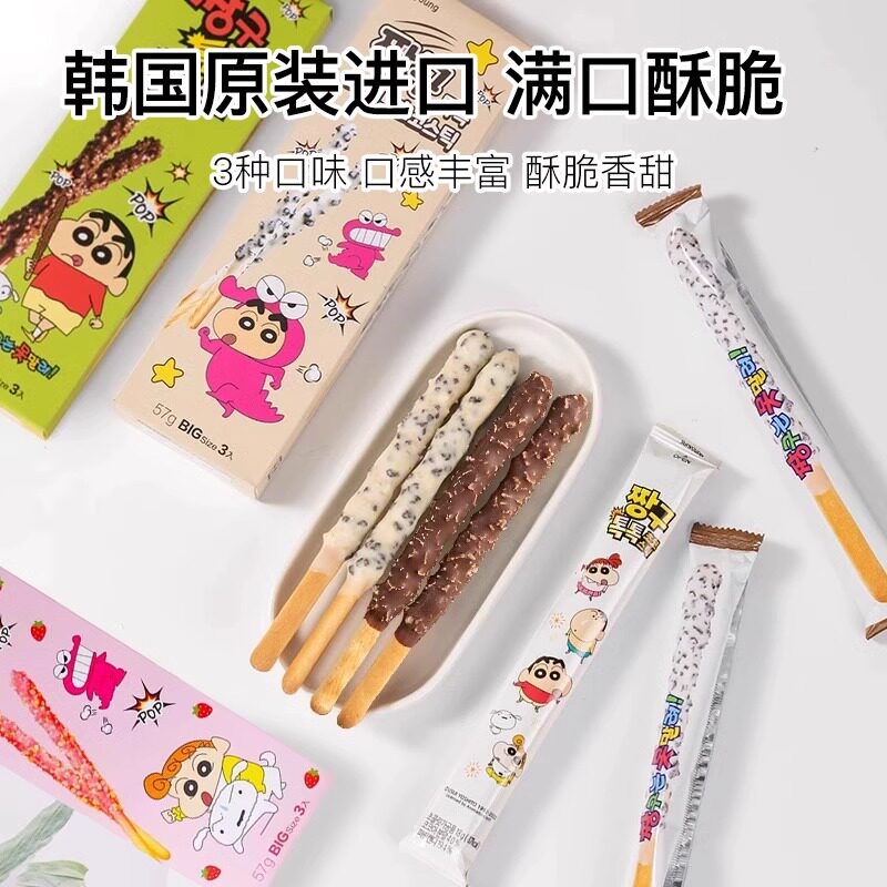 韩国进口sunyoung饼干棒跳跳糖蜡笔小新联名涂层儿童零食巧克力休