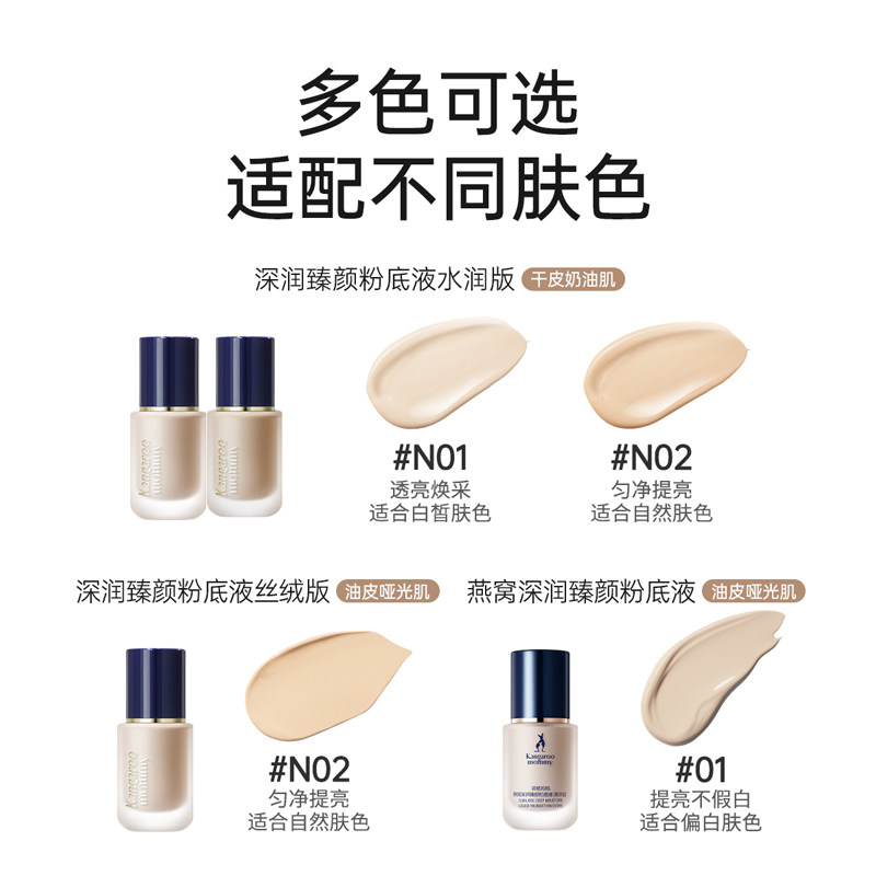 袋鼠妈妈 燕窝深润准孕妇粉底液 孕妇专用遮瑕保湿提亮肤色粉底乳