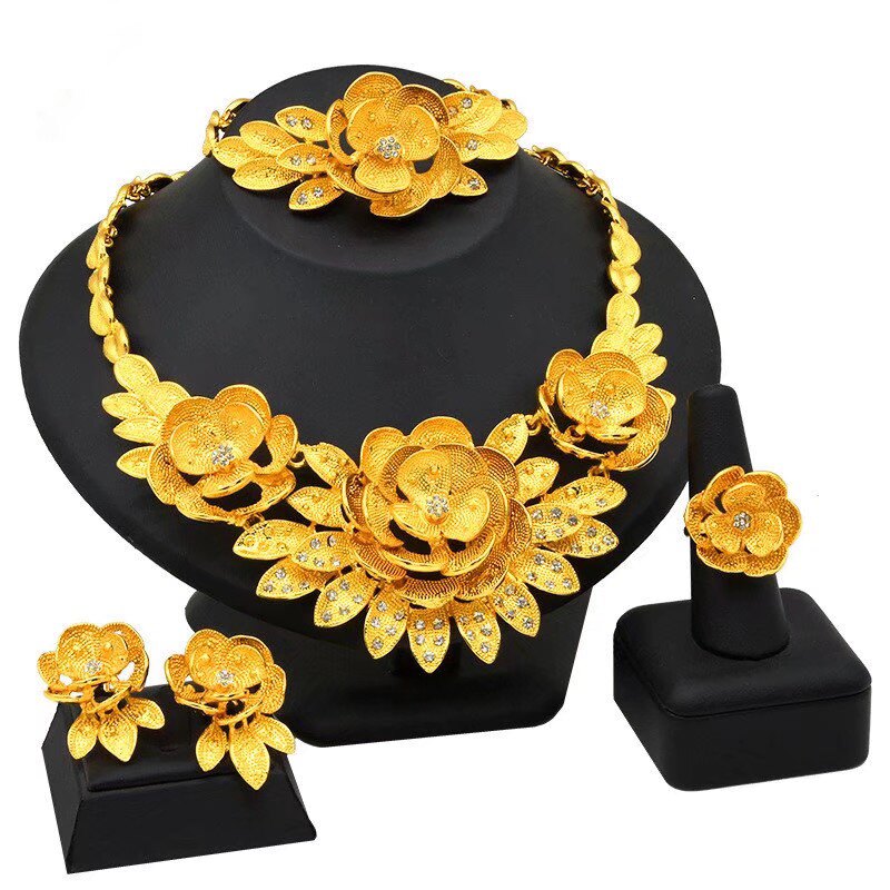 越南沙金女款项链套装泰国黄金流行珠宝婚礼礼服配饰演出潮流首饰