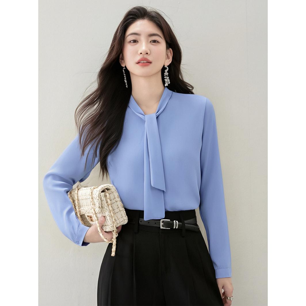 秋装150cm女装矮个子显高加小码XXXS雪纺衫垂感飘带通勤衬衫长袖