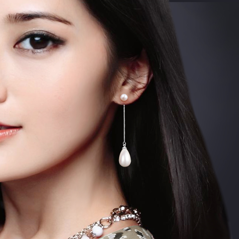 S925纯银贝壳珍珠耳环流苏长款耳坠网红百搭耳吊时尚韩版女防过敏