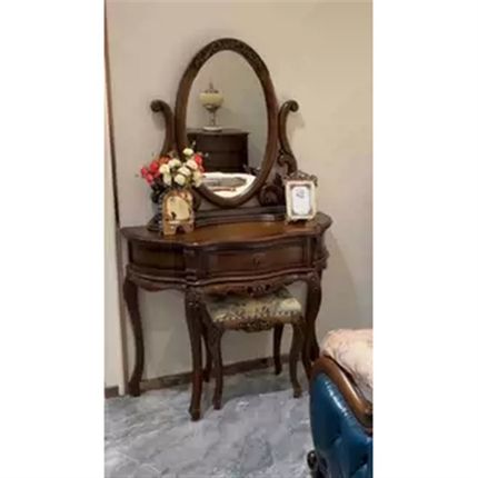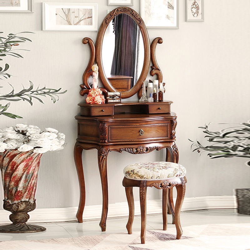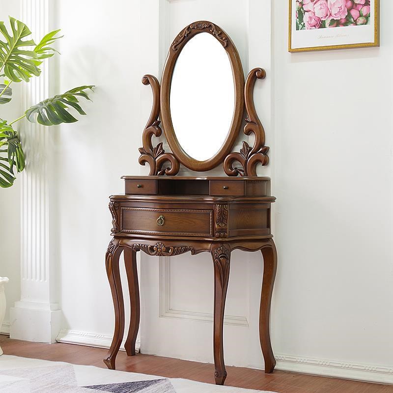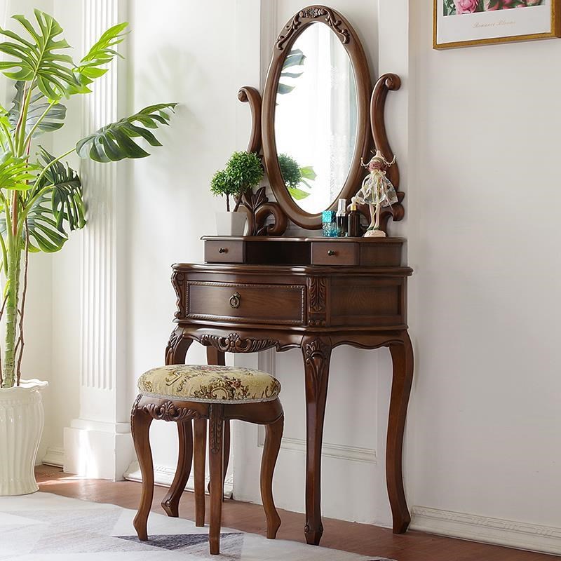 美式乡村实木卧室梳妆台80厘米法式迷你多功能欧式轻奢小户型复古