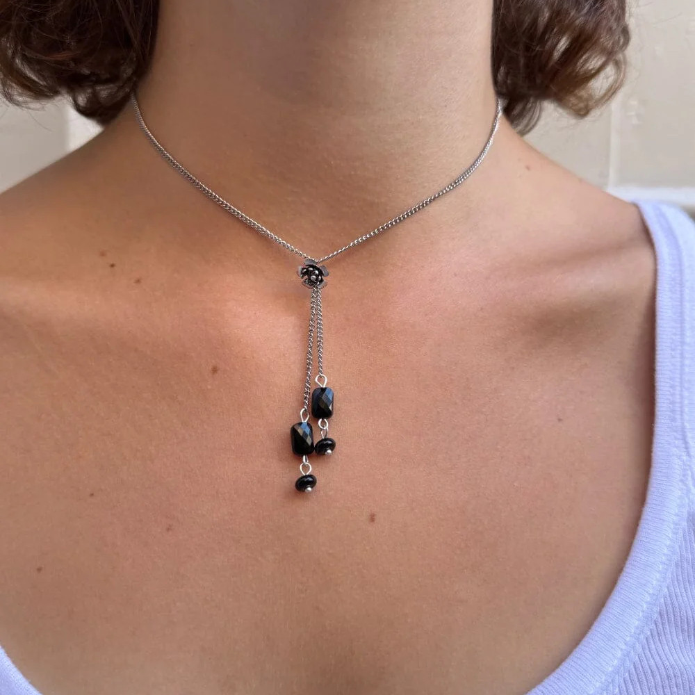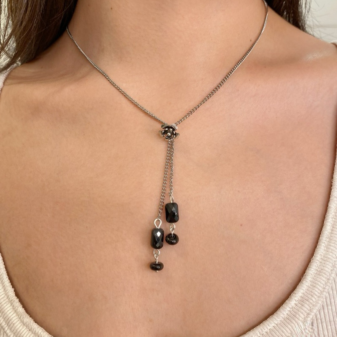 bm项链女新款流苏黑色萤石花朵细链锁骨链国内代购brandymelville
