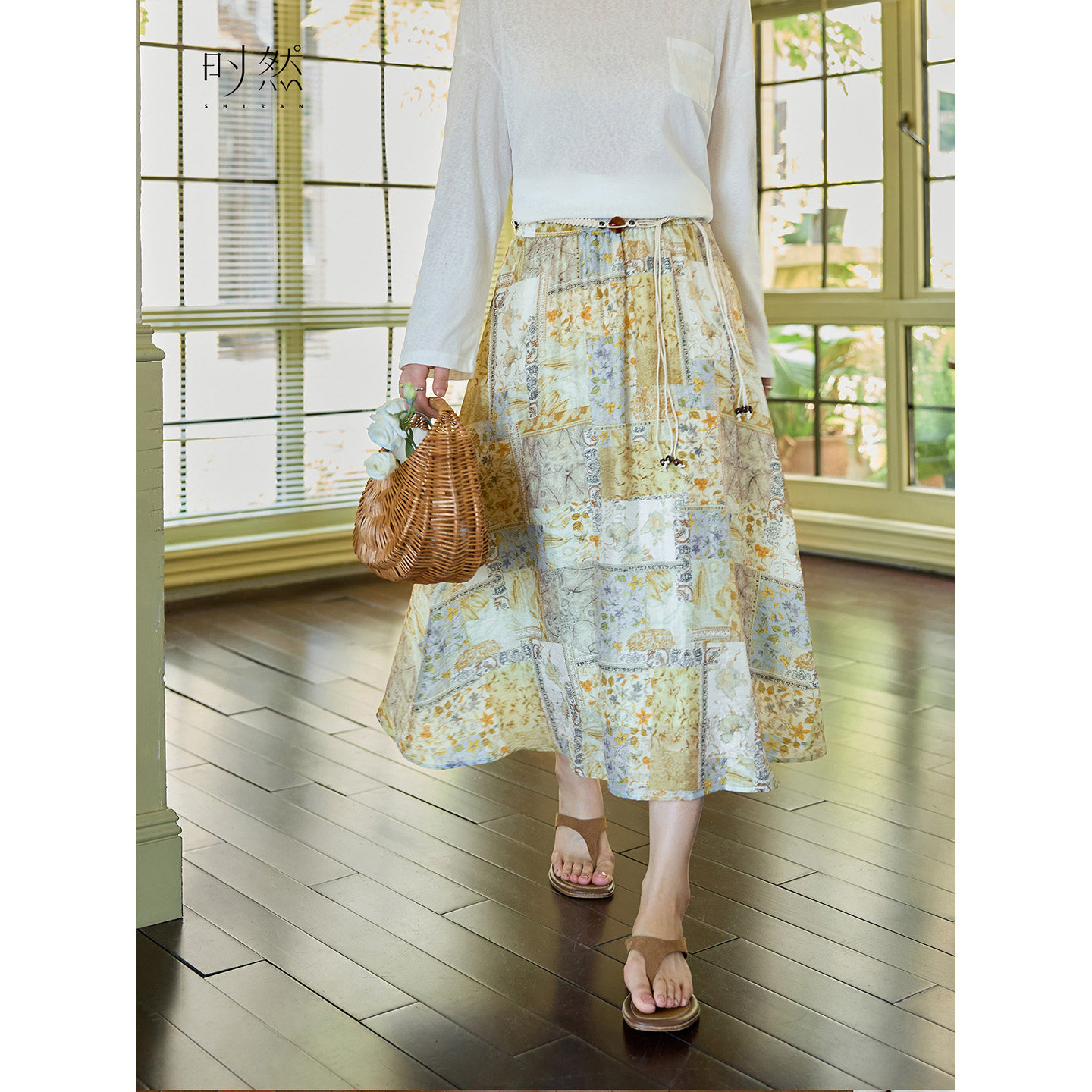时然微胖大码女装醋酸天丝半身裙2026夏季新款度假波西米亚A字裙