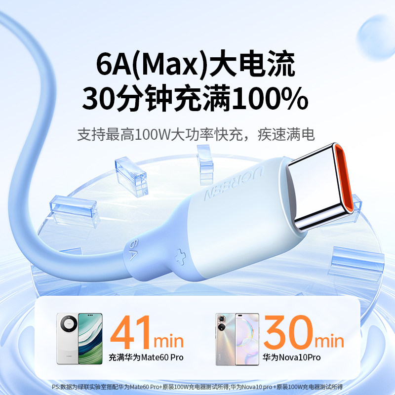 绿联type-c数据线适用华为mate70nova13荣耀小米安卓100W66W手机充电线usb转tpyec超级快充硅胶6Atapyc数据线