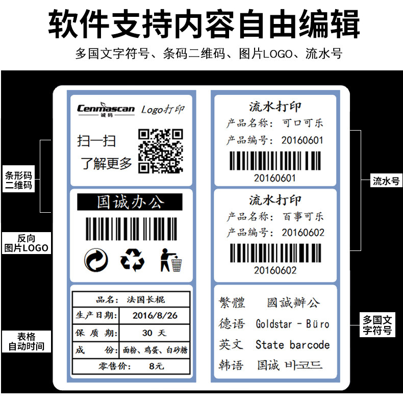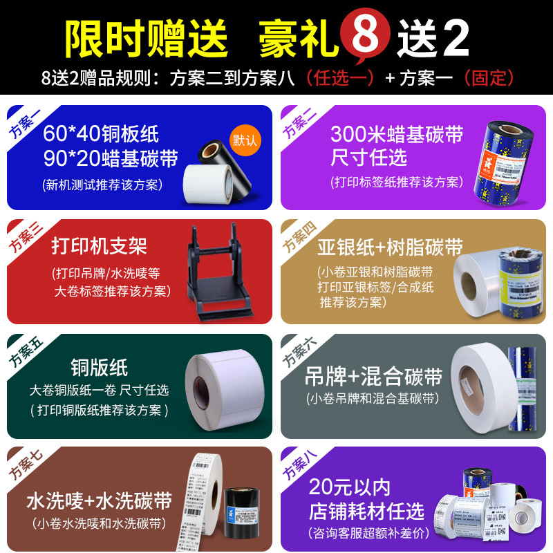 Gprinter佳博9025T碳带标签条码打印机不干胶洗唛水洗标服装吊牌合格证亚银固定标签纸蓝牙热转印1124T标签机
