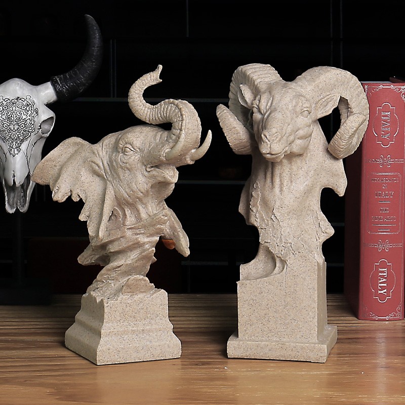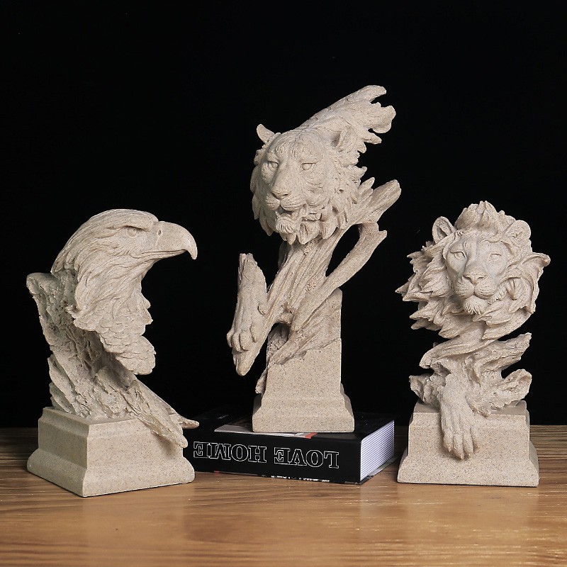 欧式动物雕塑砂岩狮子摆件创意装饰玄关书房客厅软装工艺品摆饰