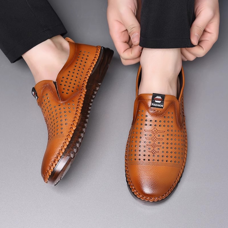 2025夏季新款真皮透气洞洞鞋头层牛皮商务休闲镂空皮鞋男爸爸鞋