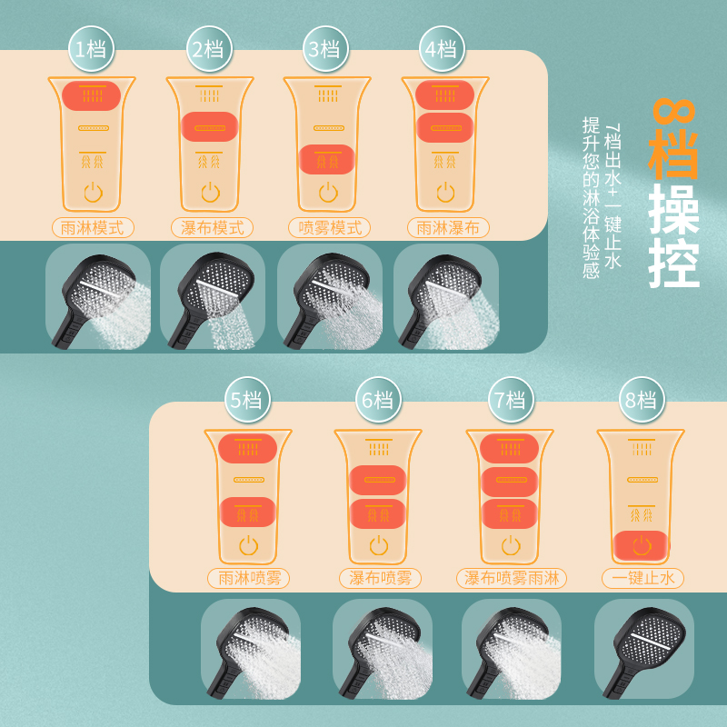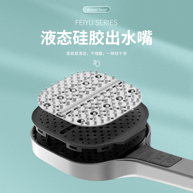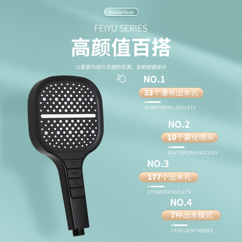 黑色方形手持增压淋浴头花洒喷头浴室家热水器通用大手喷花晒套装