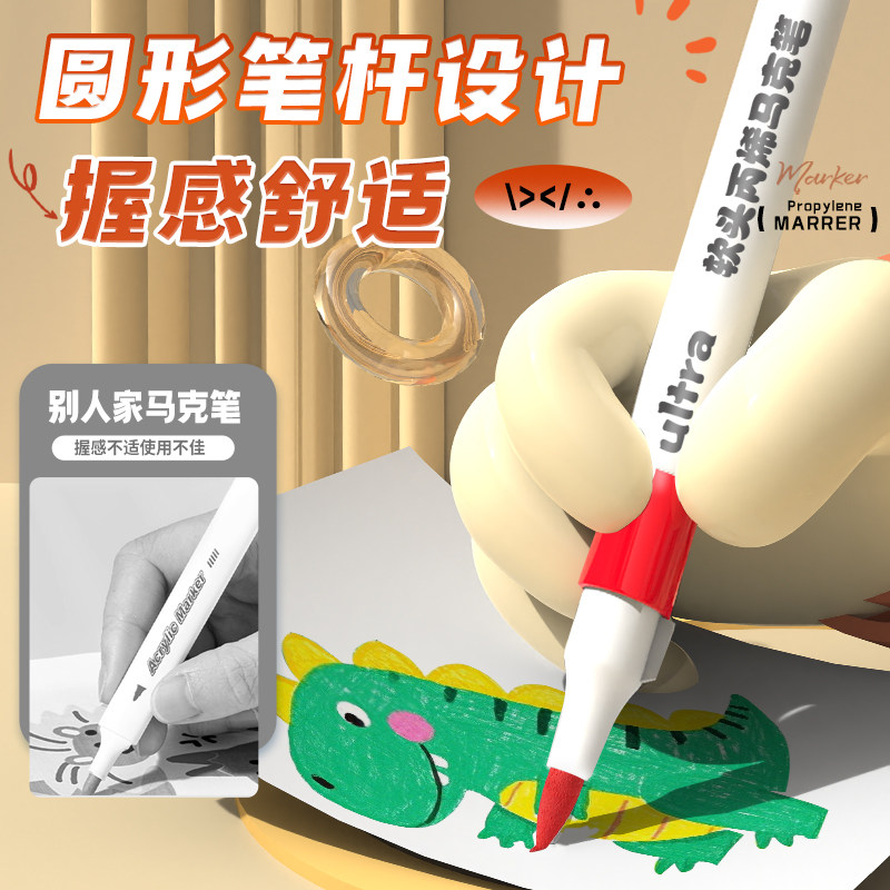 晨光软头丙烯马克笔ultra大容量美术生学生专用可叠色马克笔无毒动漫绘画DIY涂鸦笔幼儿园画画笔水彩笔丙烯笔