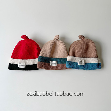 宝宝帽子秋冬款针织帽可爱奶嘴帽男女宝套头帽儿童毛线帽冬季保暖