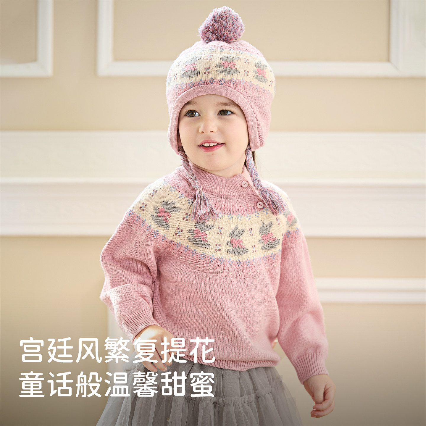 戴维贝拉儿童针织衫2025冬季女童A类宝宝毛衣洋气好看套头羊毛衫