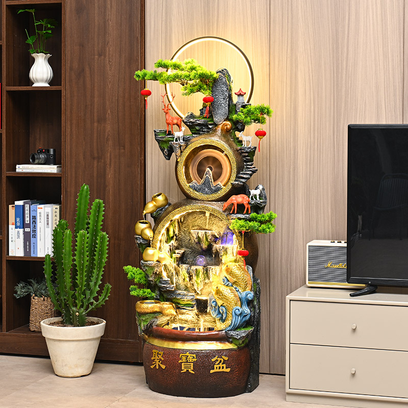 假山流水聚宝盆招财风水轮循环水景喷泉落地摆件开业乔迁装饰送礼