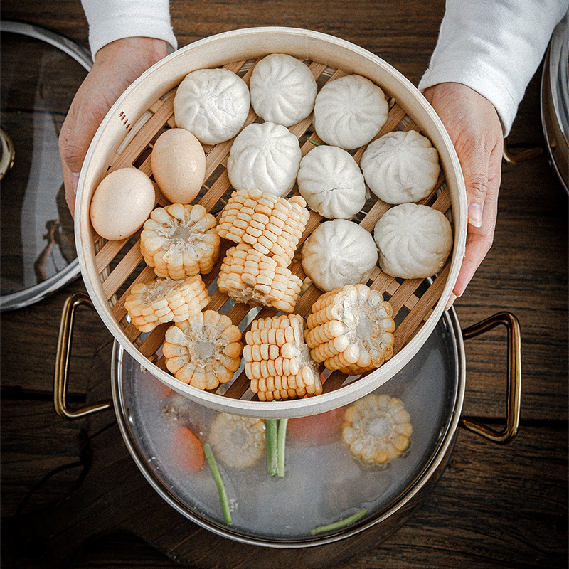 加厚304不锈钢无涂层汤锅家用双耳蒸锅多功能汤锅电磁炉燃气通用
