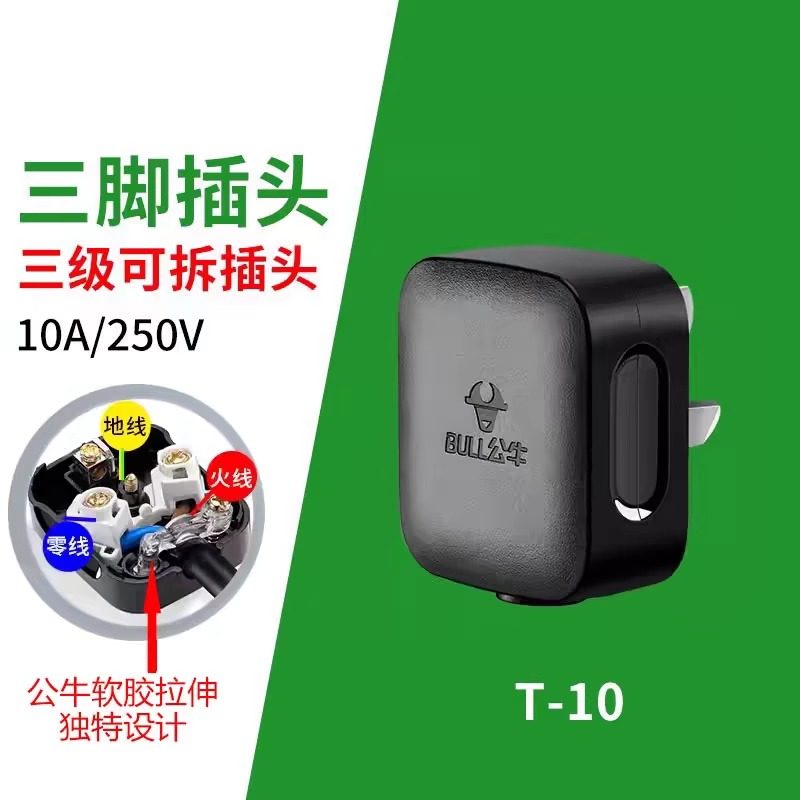 公牛三脚插头3孔10a两三相项电线电源工业插座不带线GNT-10S黑色