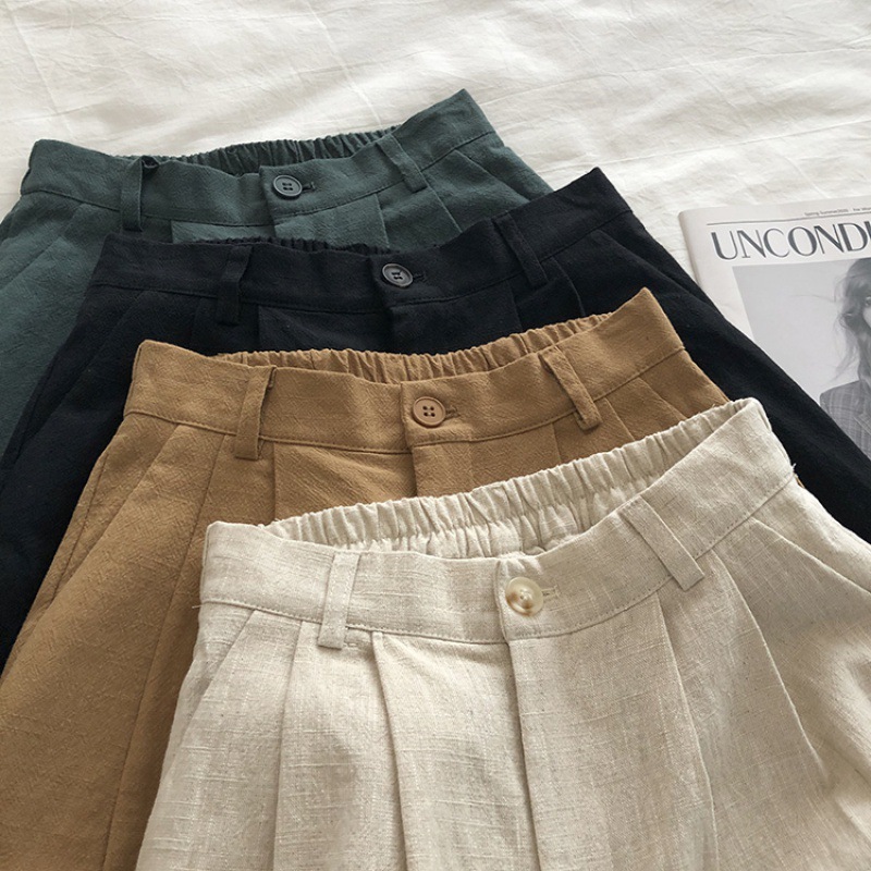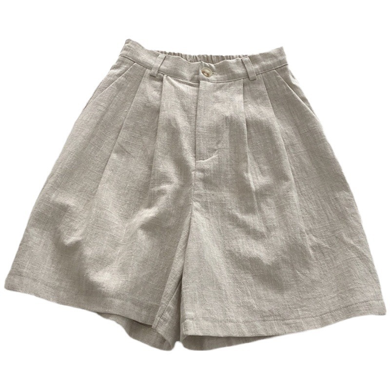 2025夏季透气棉麻短裤日系复古高腰显瘦亚麻阔腿五分裤休闲西装女