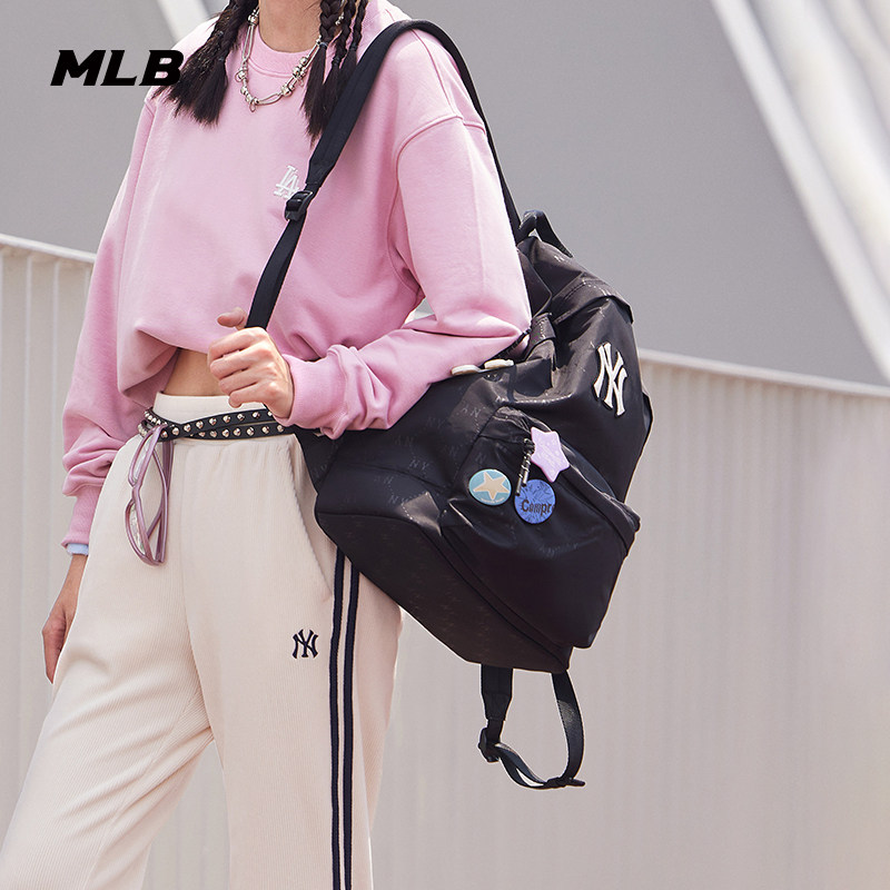 MLB官方 男女情侣大容量钻石老花双肩背包25秋冬新款BKM02/BKB04