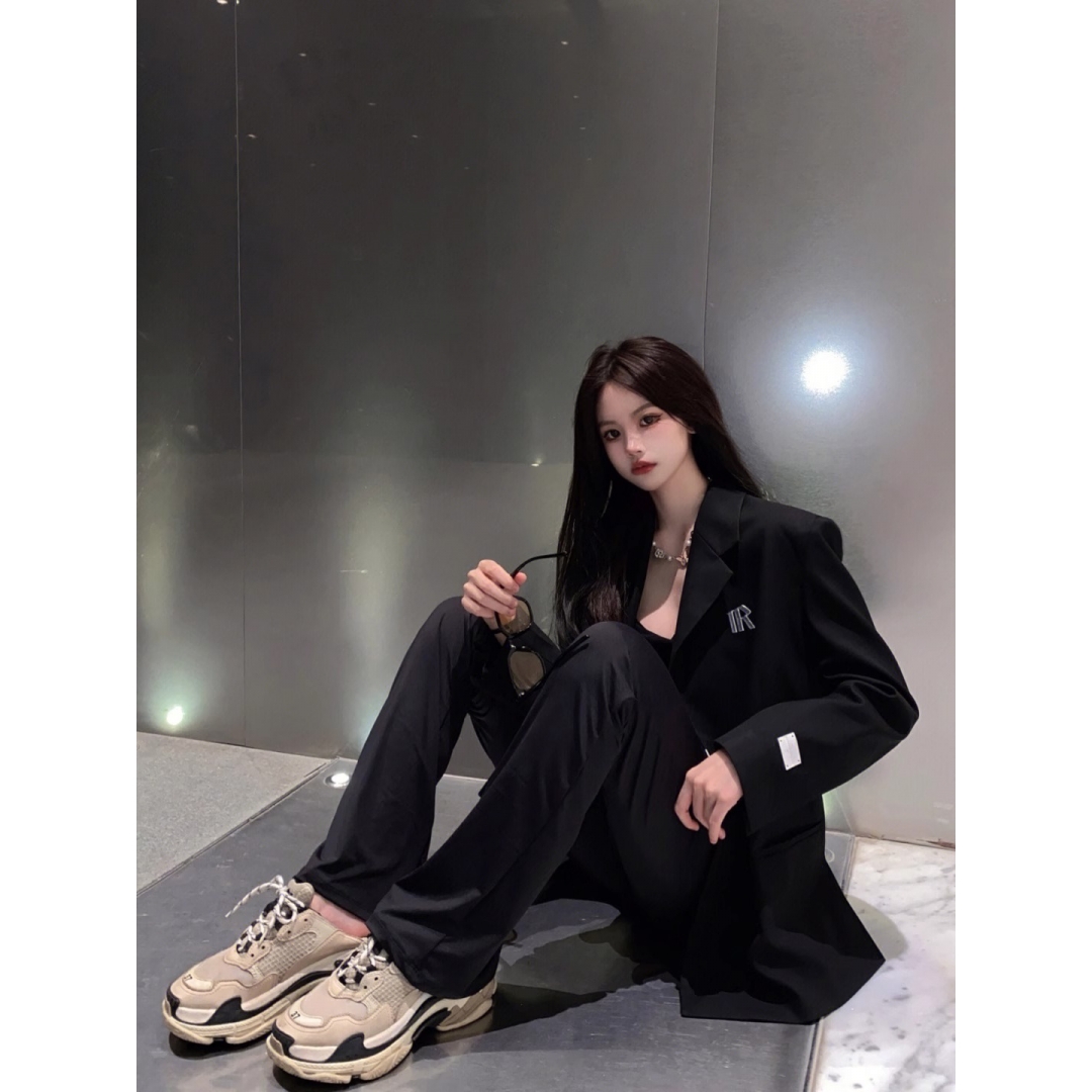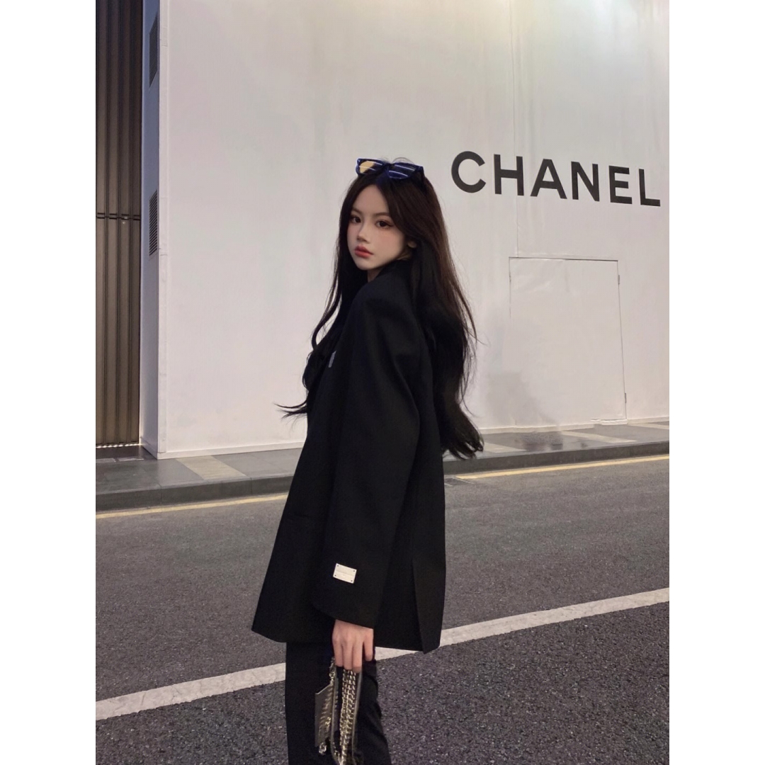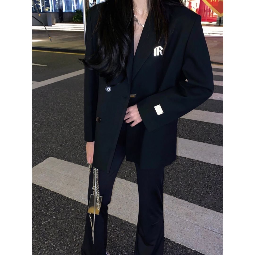 KEFI大码胖mm韩版西装外套女春秋冬高级感宽松垫肩休闲黑色小西服