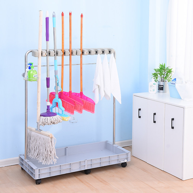 不锈钢可移动拖把挂架落地式扫把墩布置物架子卫生间收纳清洁工具